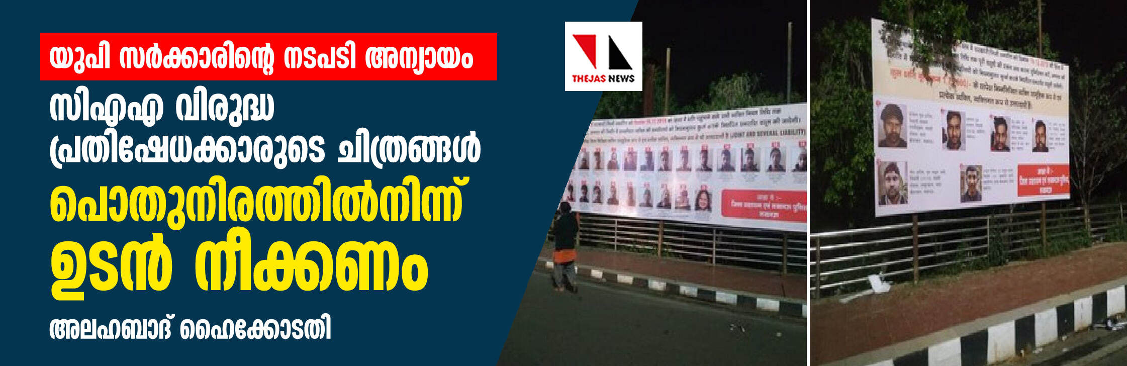 യുപി സര്ക്കാരിന്റെ നടപടി അന്യായം; സിഎഎ വിരുദ്ധ പ്രതിഷേധക്കാരുടെ ചിത്രങ്ങള് പൊതുനിരത്തില്നിന്ന് ഉടന് നീക്കണം: അലഹബാദ് ഹൈക്കോടതി