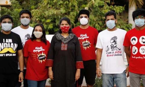 ഡിഎംകെ യൂത്ത് വിങ് സെക്രട്ടറി ഉദയാനിധി സ്റ്റാലിന്, തമിഴ് ചലച്ചിരംഗത്തെ അഭിനേതാക്കളായ ഐശ്വര്യ രാജേഷ്, ശാന്തനു ഭാഗ്യരാജ്, ഭാര്യ കീര്ത്തി ശാന്തനു എന്നിവരും ഹിന്ദി അടിച്ചേല്പ്പിക്കുന്നതിനെതിരേ തമിഴ് മുദ്രാവാക്യങ്ങളടങ്ങിയ ടീ ഷര്ട്ടുകള് ധരിച്ച് പ്രത്യക്ഷപ്പെട്ടു. കുറച്ച് ദിവസങ്ങള്ക്ക് മുമ്പ് ചലച്ചിത്ര നിര്മാതാവ് വെട്രിമാരന് 2011 ല് ഇന്ത്യയിലെ ഒരു വിമാനത്താവളത്തില് ഹിന്ദി അറിയാത്തതിന്റെ പേരില് അപമാനിക്കപ്പെട്ട സംഭവം പങ്കുവച്ചിരുന്നുവെന്നത് ശ്രദ്ധേയമാണ്.