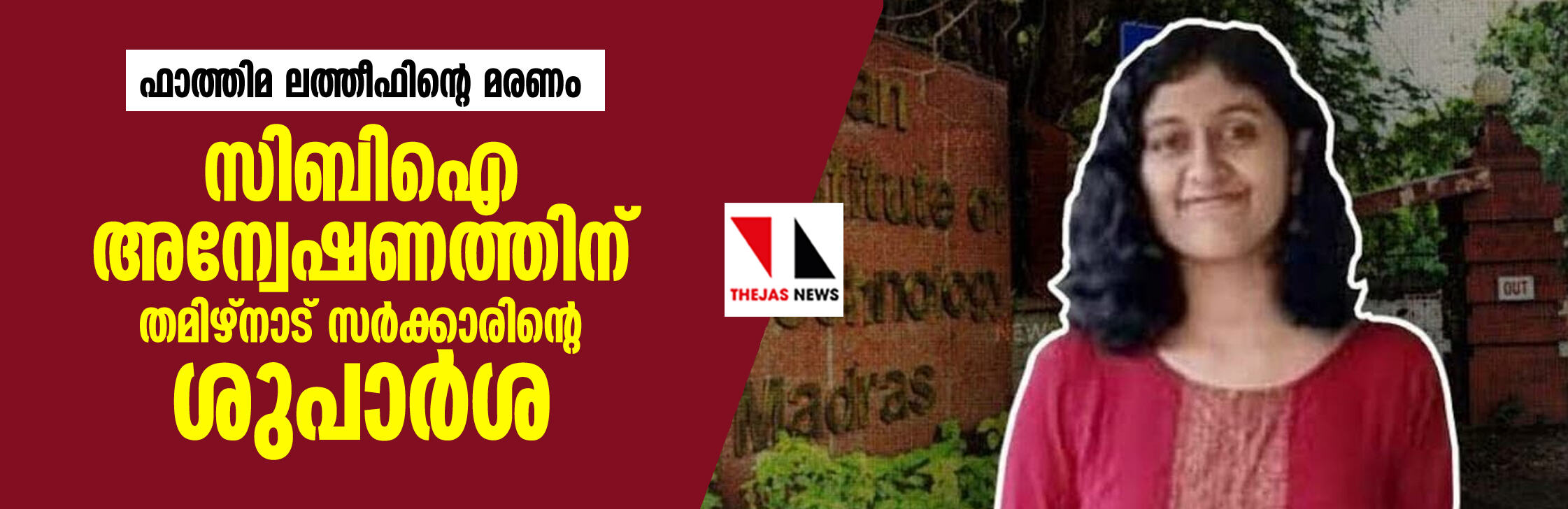 ഫാത്തിമ ലത്തീഫിന്റെ മരണം: സിബിഐ അന്വേഷണത്തിന് തമിഴ്നാട് സര്ക്കാരിന്റെ ശുപാര്ശ