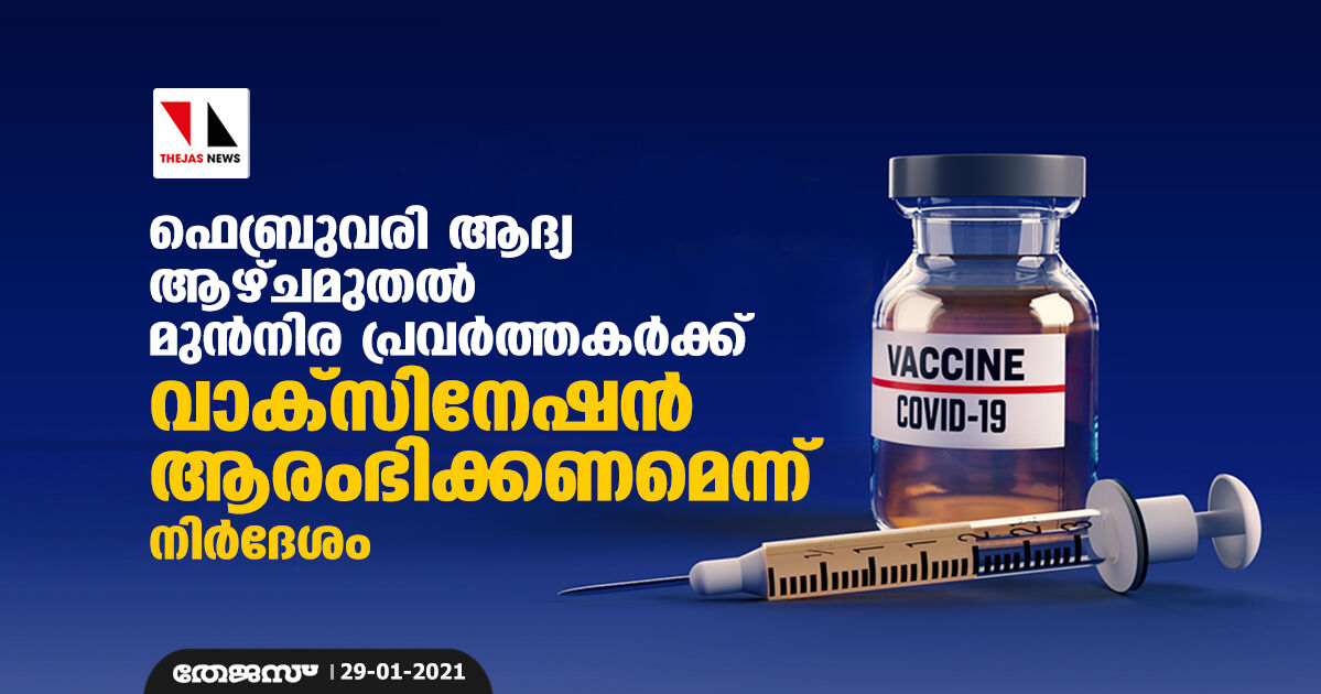 ഫെബ്രുവരി ആദ്യ ആഴ്ചമുതല് മുന്നിര പ്രവര്ത്തകര്ക്ക് വാക്സിനേഷന് ആരംഭിക്കണമെന്ന് നിർദേശം