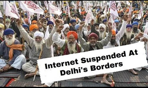 കര്ഷകപ്രക്ഷോഭത്തിന്റെ പ്രഭവകേന്ദ്രമായി മാറിയ സിംഘു, തിക്രി, ഗാസിപ്പൂര് അതിര്ത്തികളിലെ ഇന്റര്നെറ്റുകളാണ് കേന്ദ്രസര്ക്കാര് രണ്ടുദിവസത്തേയ്ക്ക് വിച്ഛേദിച്ചത്. 29ന് രാത്രി 11 മുതല് 31ന് രാത്രി 11 വരെ ഇന്റര്നെറ്റ് സേവനം താല്ക്കാലികമായി നിര്ത്തിവയ്ക്കുമെന്ന് കേന്ദ്ര ആഭ്യന്തര മന്ത്രാലയം വാര്ത്താക്കുറിപ്പില് വ്യക്തമാക്കി.