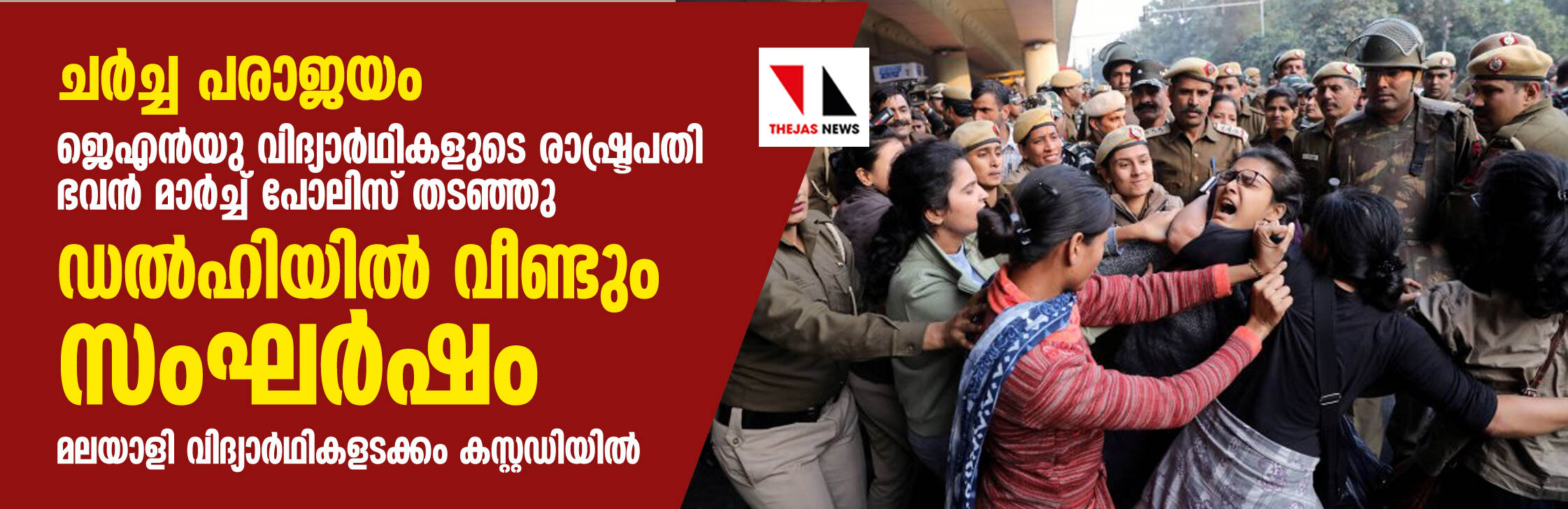 ചര്ച്ച പരാജയം, ജെഎന്യു വിദ്യാര്ഥികളുടെ രാഷ്ട്രപതി ഭവന് മാര്ച്ച് പോലിസ് തടഞ്ഞു; ഡല്ഹിയില് വീണ്ടും സംഘര്ഷം