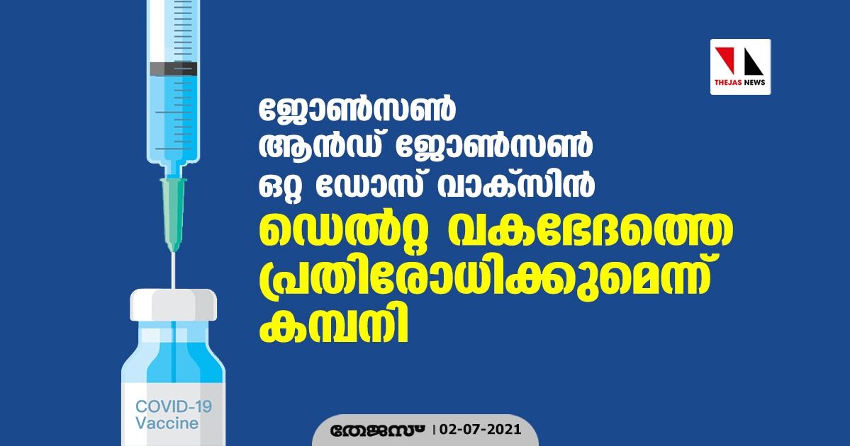 ജോൺസൺ ആൻഡ് ജോൺസൺ ഒറ്റ ഡോസ് വാക്സിൻ ഡെൽറ്റ വകഭേദത്തെ പ്രതിരോധിക്കുമെന്ന് കമ്പനി