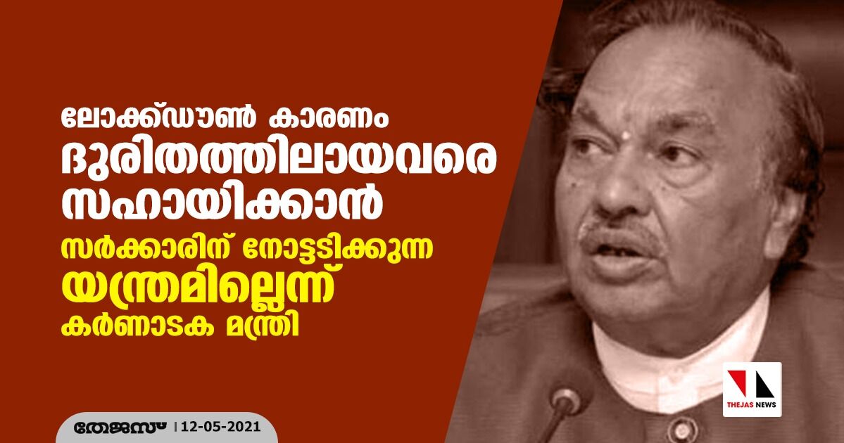 ലോക്ക്ഡൗണ് കാരണം ദുരിതത്തിലായവരെ സഹായിക്കാന് സര്ക്കാരിന് നോട്ടടിക്കുന്ന യന്ത്രമില്ലെന്ന് കർണാടക മന്ത്രി