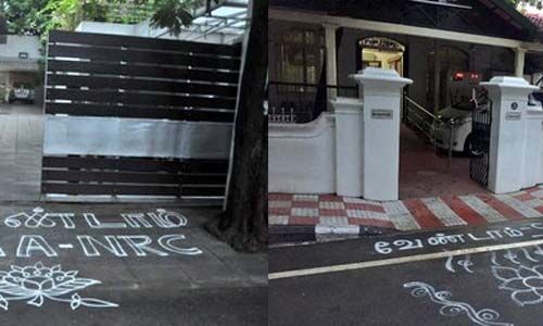 ചെന്നൈ: പൗരത്വ ഭേദഗതി നിയമത്തിനെതിരേ കോലംവരച്ച് സമരം ചെയ്തവര്ക്കെതിരേ കേസെടുത്ത സംഭവത്തില് പ്രതിഷേധിച്ച് തമിഴ്നാട്ടില് കോലംവരച്ച് പ്രതിഷേധം വ്യാപകമാവുന്നു. ഡിഎംകെ അധ്യക്ഷന് എം കെ സ്റ്റാലിന്, എംപി കനിമൊഴി, മധുരയിലെ മുന് ഡിഎംകെ മന്ത്രി ആര് തമിഴരാസി എന്നിവരുടെ വീടുകള്ക്കു മുന്നിലും സിഎഎ, എന്ആര്സി എന്നിവയ്ക്കെതിരേ മുദ്രാവാക്യങ്ങളുമായി കോലങ്ങള് പ്രത്യക്ഷപ്പെട്ടിരിക്കുകയാണ്. ആല്വാര്പേട്ടിലെ തന്റെ വീടിനു മുന്നില് വരച്ച കോലത്തിന്റെ ചിത്രങ്ങള് എം കെ സ്റ്റാലിന് ട്വിറ്ററില് പങ്കുവച്ചിട്ടുണ്ട്. 'ഞങ്ങളുടെ വീട്ടിലും എന്ആര്സി, സിഎഎ വിരുദ്ധസമരം' എന്ന കുറിപ്പോടെയാണ് സ്റ്റാലിന് ചിത്രങ്ങള് പങ്കുവച്ചത്.