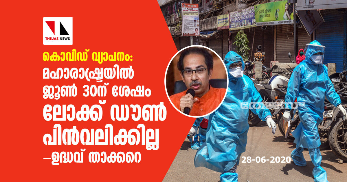 കൊവിഡ് വ്യാപനം: മഹാരാഷ്ട്രയില് ജൂണ് 30ന് ശേഷം ലോക്ക് ഡൗണ് പിന്വലിക്കില്ല- ഉദ്ധവ് താക്കറെ