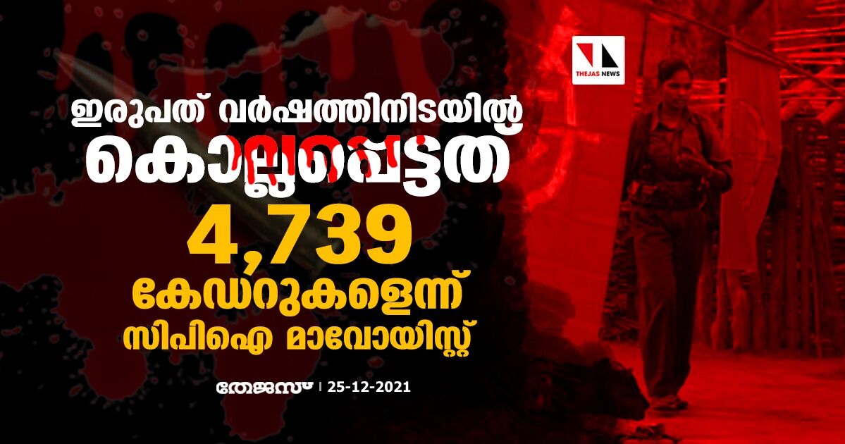 ഇരുപത് വർഷത്തിനിടയിൽ കൊല്ലപ്പെട്ടത് 4739 കേഡറുകളെന്ന് സിപിഐ മാവോയിസ്റ്റ്
