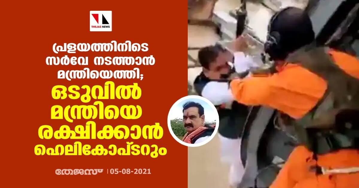 പ്രളയത്തിനിടെ സർവേ നടത്താൻ മന്ത്രിയെത്തി; ഒടുവിൽ മന്ത്രിയെ രക്ഷിക്കാൻ ഹെലികോപ്ടറും