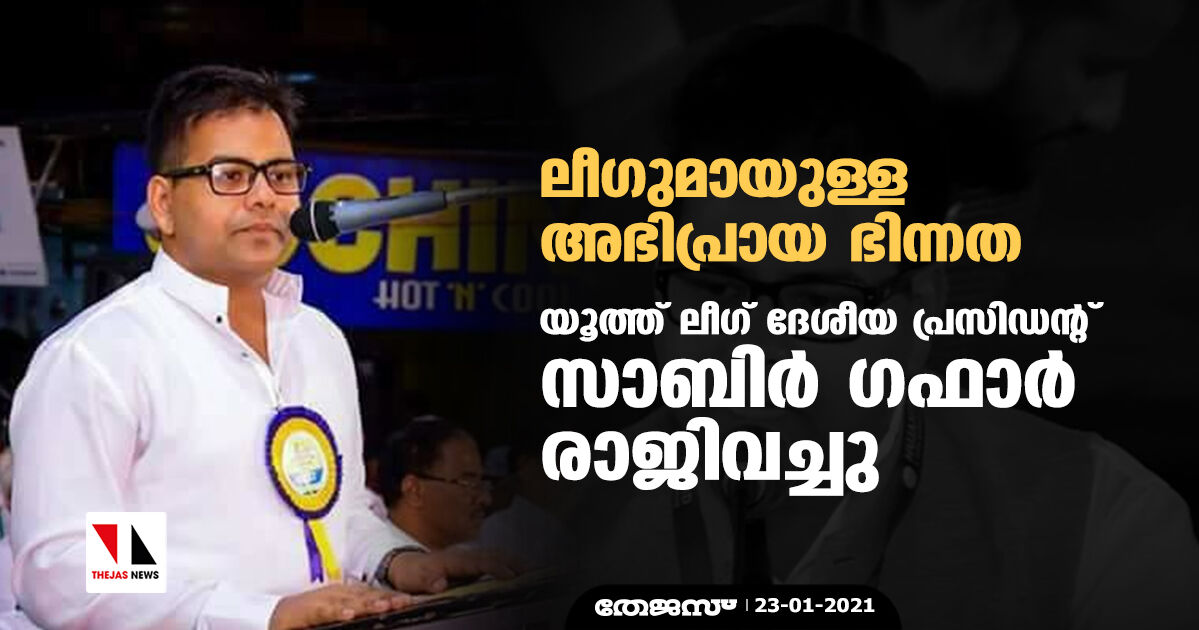 ലീഗുമായുള്ള അഭിപ്രായ ഭിന്നത; യൂത്ത് ലീഗ് ദേശീയ പ്രസിഡന്റ് സാബിര് ഗഫാര് രാജിവച്ചു