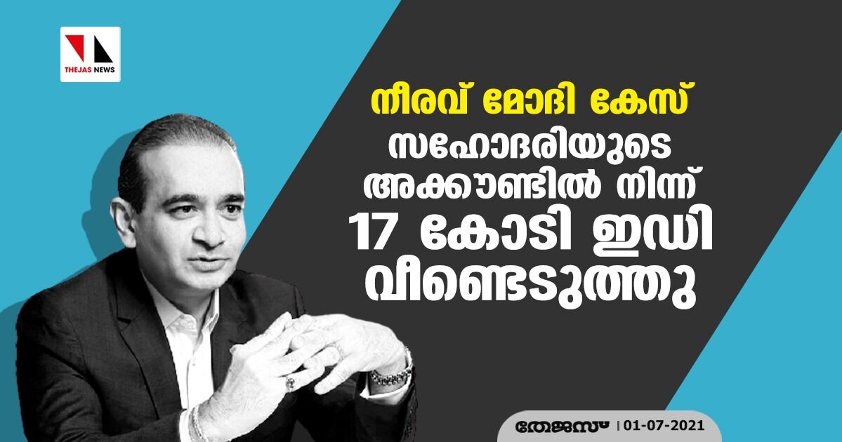 നീരവ് മോദി കേസ്: സഹോദരിയുടെ അക്കൗണ്ടിൽ നിന്ന് 17 കോടി ഇഡി വീണ്ടെടുത്തു