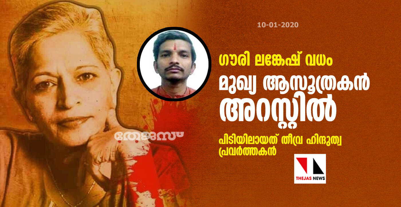 ഗൗരി ലങ്കേഷ് വധം: മുഖ്യ ആസൂത്രകന് അറസ്റ്റില് -പിടിയിലായത് തീവ്ര ഹിന്ദുത്വ പ്രവര്ത്തകന്