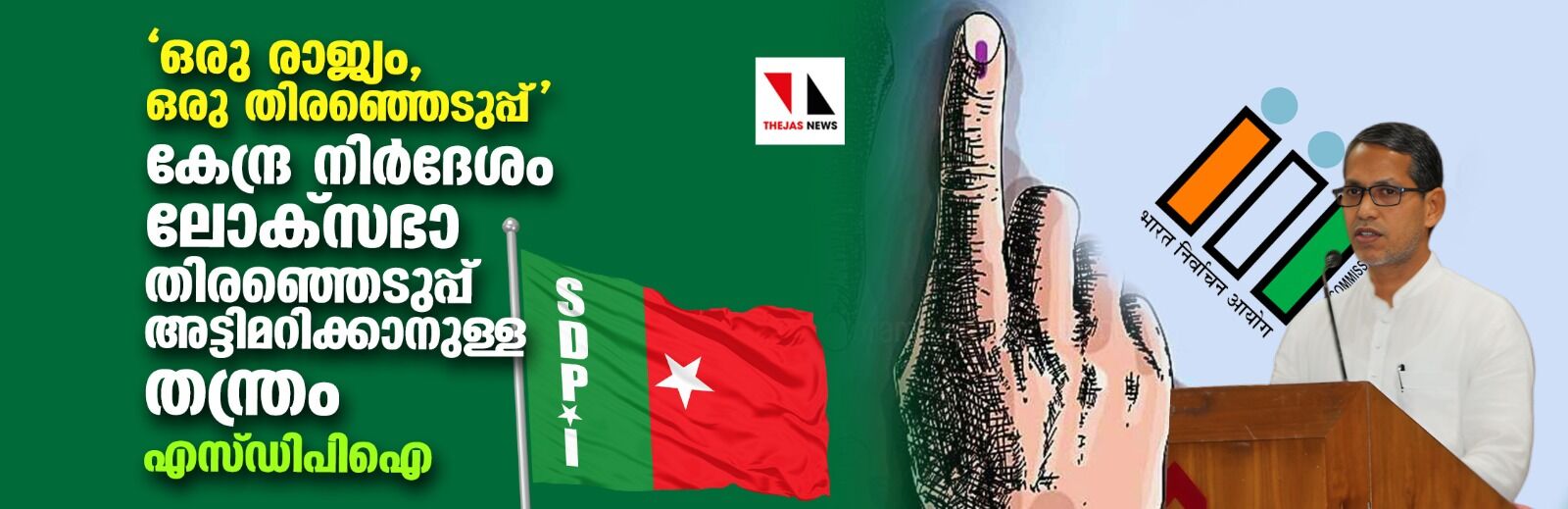 ഒരു രാജ്യം, ഒരു തിരഞ്ഞെടുപ്പ്; കേന്ദ്ര നിര്ദ്ദേശം സംശയാസ്പദം; വരാനിരിക്കുന്ന ലോക്സഭാ തിരഞ്ഞെടുപ്പ് അട്ടിമറിക്കാനുള്ള തന്ത്രം: എസ്ഡിപിഐ