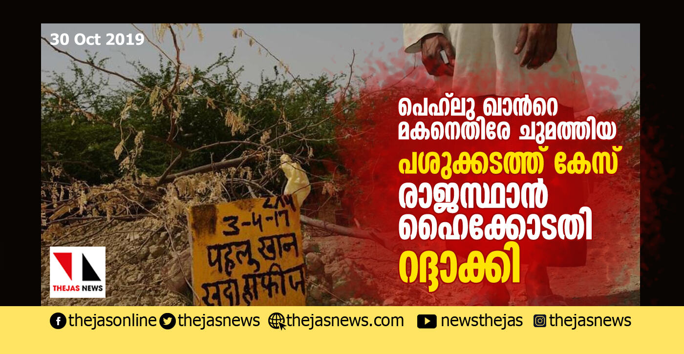 പെഹ്ലു ഖാൻറെ മകനെതിരേ ചുമത്തിയ പശുക്കടത്ത് കേസ് രാജസ്ഥാൻ ഹൈക്കോടതി റദ്ദാക്കി