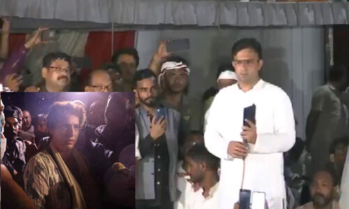 #WATCH | Congress General Secretary Priyanka Gandhi Vadra addresses party workers gathered outside a guest house in Sitapur where she is under detention, through phone call.