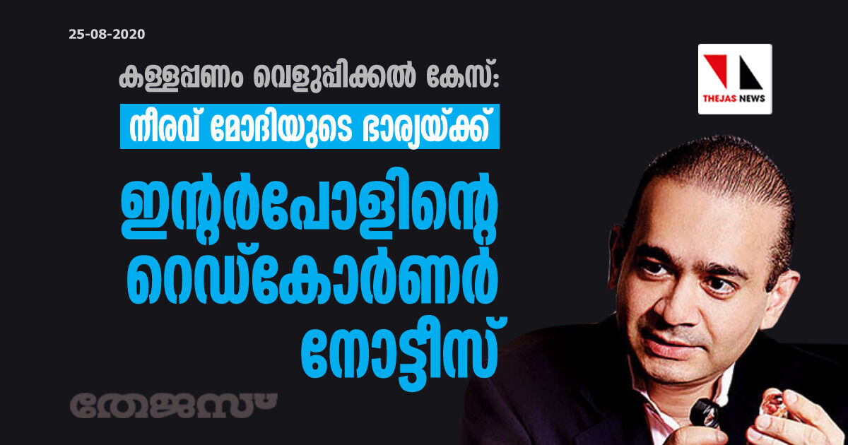 കള്ളപ്പണം വെളുപ്പിക്കല് കേസ്: നീരവ് മോദിയുടെ ഭാര്യയ്ക്ക് ഇന്റര്പോളിന്റെ റെഡ്കോര്ണര് നോട്ടീസ്