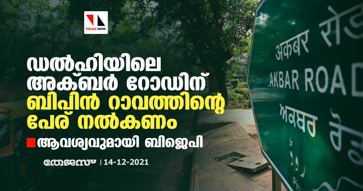 ഡൽഹിയിലെ അക്ബർ റോഡിന് ബിപിൻ റാവത്തിന്റെ പേര് നൽകണം; ആവശ്യവുമായി ബിജെപി