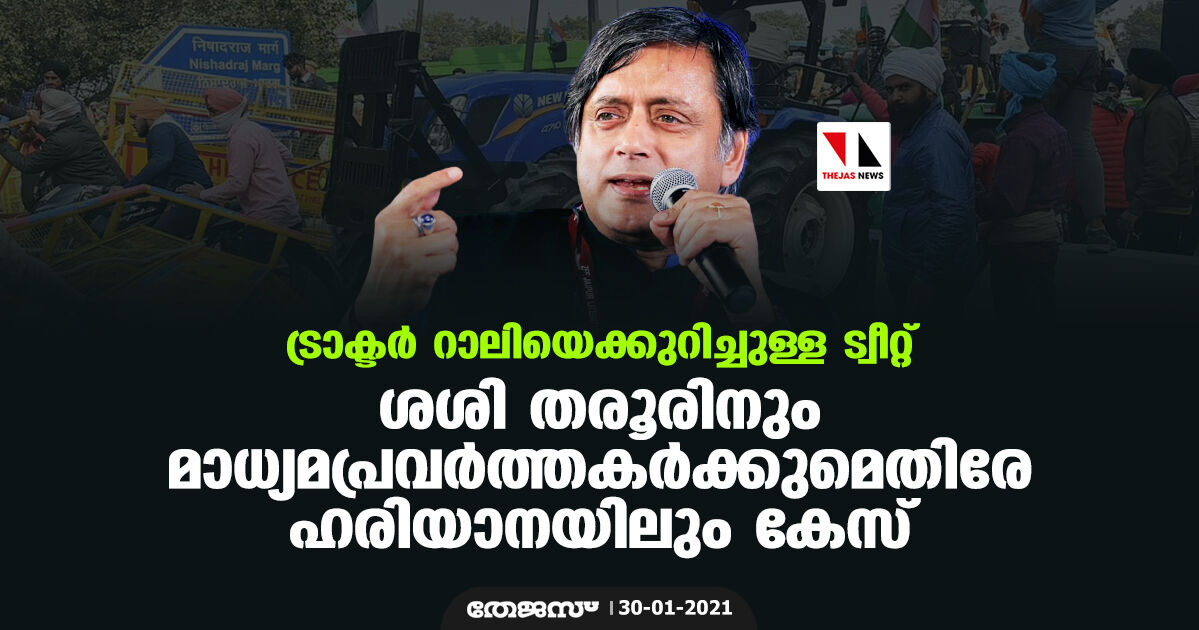 ട്രാക്ടര് റാലിയെക്കുറിച്ചുള്ള ട്വീറ്റ്: ശശി തരൂരിനും മാധ്യമപ്രവര്ത്തകര്ക്കുമെതിരേ ഹരിയാനയിലും കേസ്