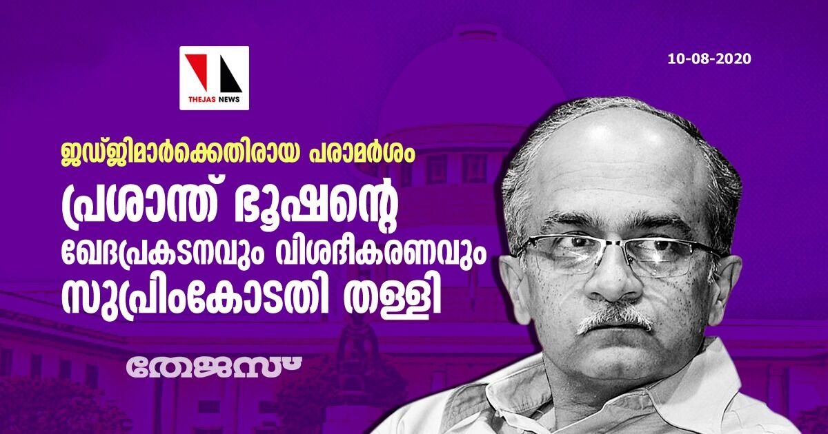 ജഡ്ജിമാര്ക്കെതിരായ പരാമര്ശം; പ്രശാന്ത് ഭൂഷന്റെ ഖേദപ്രകടനവും വിശദീകരണവും സുപ്രിംകോടതി തള്ളി