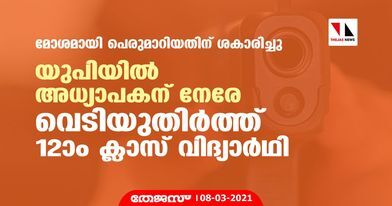 മോശമായി പെരുമാറിയതിന് ശകാരിച്ചു; യുപിയില് അധ്യാപകന് നേരേ വെടിയുതിര്ത്ത് 12ാം ക്ലാസ് വിദ്യാര്ഥി
