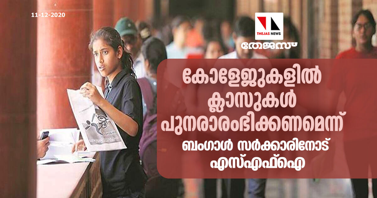കോളേജുകളിൽ ക്ലാസുകൾ പുനരാരംഭിക്കണമെന്ന് ബംഗാൾ സർക്കാരിനോട് എസ്എഫ്ഐ