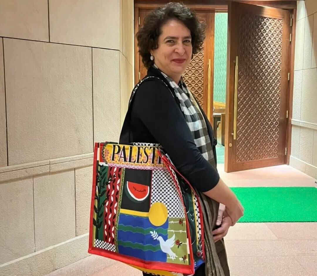 ഫലസ്തീന് ഐക്യദാര്ഢ്യം; 'ഫലസ്തീന്' പ്രിന്റ് ചെയ്ത ബാഗുമായി പ്രിയങ്ക പാര്ലമെന്റില്(വീഡിയോ)