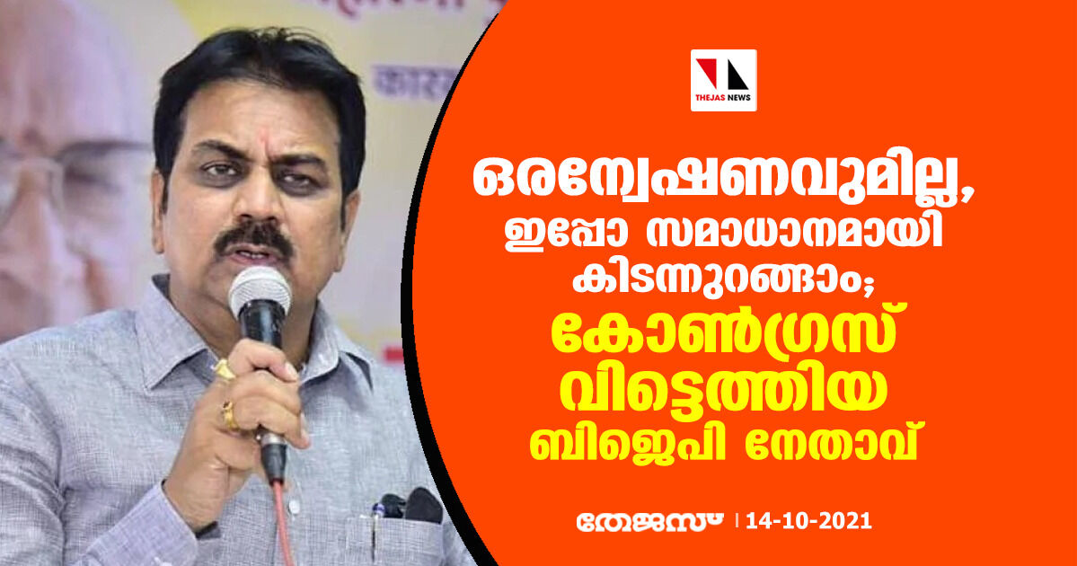ഒരന്വേഷണവുമില്ല, ഇപ്പോ സമാധാനമായി കിടന്നുറങ്ങാം; കോണ്ഗ്രസ് വിട്ടെത്തിയ ബിജെപി നേതാവ്