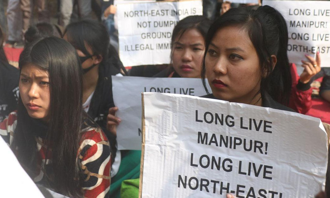 പൗരത്വബില്: പാര്ലമെന്റിനു സമീപം പ്രധാനമന്ത്രിയുടെ കോലം കത്തിച്ചു മണിപ്പൂര് വിദ്യാര്ത്ഥികളുടെ പ്രതിഷേധം