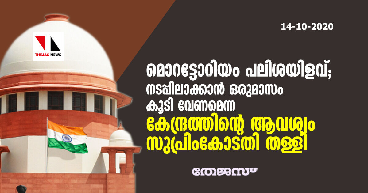 മൊറട്ടോറിയം പലിശയിളവ്; നടപ്പിലാക്കാന് ഒരുമാസം കൂടി വേണമെന്ന കേന്ദ്രത്തിന്റെ ആവശ്യം സുപ്രിംകോടതി തള്ളി