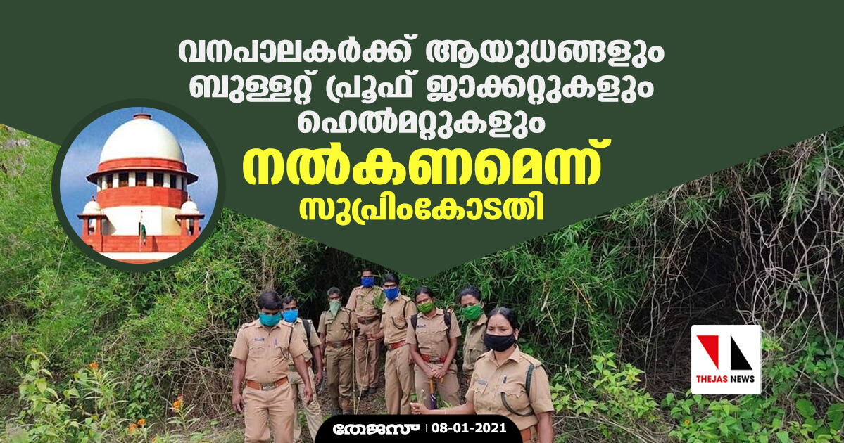 വനപാലകര്ക്ക് ആയുധങ്ങളും ബുള്ളറ്റ് പ്രൂഫ് ജാക്കറ്റുകളും ഹെല്മറ്റുകളും നല്കണമെന്ന് സുപ്രിംകോടതി
