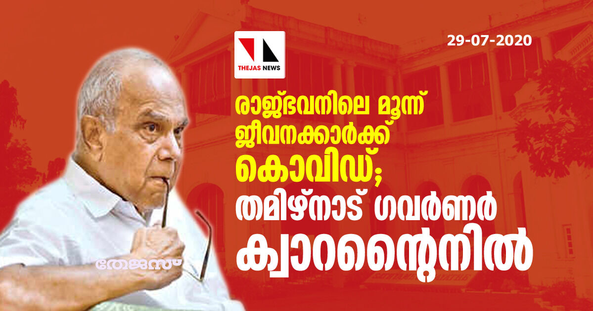 രാജ്ഭവനിലെ മൂന്ന് ജീവനക്കാര്ക്ക് കൊവിഡ്; തമിഴ്നാട് ഗവര്ണര് ക്വാറന്റൈനില്