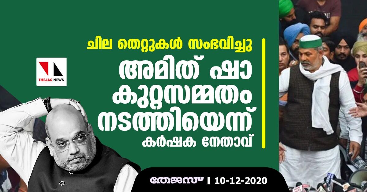 ചില തെറ്റുകള് സംഭവിച്ചു; അമിത് ഷാ കുറ്റസമ്മതം നടത്തിയെന്ന് കര്ഷക നേതാവ്