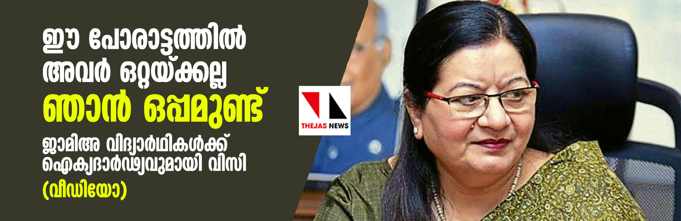 ഈ പോരാട്ടത്തില് അവര് ഒറ്റയ്ക്കല്ല, ഞാന് ഒപ്പമുണ്ട്; ജാമിഅ വിദ്യാര്ഥികള്ക്ക് ഐക്യദാര്ഢ്യവുമായി വിസി (വീഡിയോ)