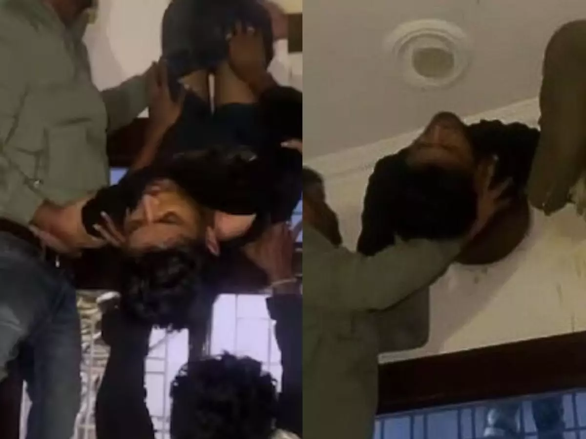 In Rajasthan's Kota, a family returned from Khatu Shyam Ji darshan to find a thief stuck in the exhaust fan hole! They called police to pull him out. Accused Pawan drives a police officer's car. 😳