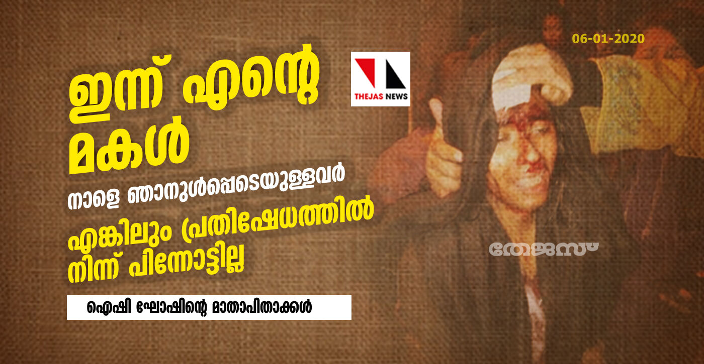 ഇന്ന് എന്റെ മകള്, നാളെ ഞാനുള്പ്പടെയുള്ളവര്; പ്രതിഷേധത്തില്നിന്ന് പിന്നോട്ടില്ല: ഐഷി ഘോഷിന്റെ മാതാപിതാക്കള്