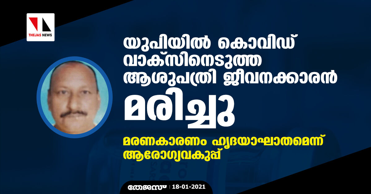 യുപിയില് കൊവിഡ് വാക്സിനെടുത്ത ആശുപത്രി ജീവനക്കാരന് മരിച്ചു; മരണകാരണം ഹൃദയാഘാതമെന്ന് ആരോഗ്യവകുപ്പ്