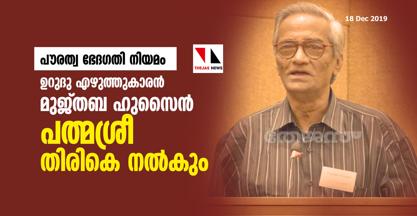 പൗരത്വനിയമത്തില് പ്രതിഷേധം: ഉറുദു എഴുത്തുകാരന് മുജ്തബ ഹുസൈന് പത്മശ്രീ തിരികെ നല്കും