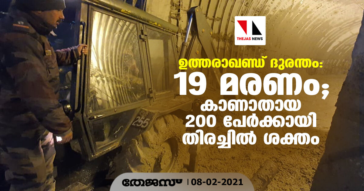 ഉത്തരാഖണ്ഡ് ദുരന്തം: 19 മരണം; കാണാതായ 200 പേര്ക്കായി തിരച്ചില് ശക്തം