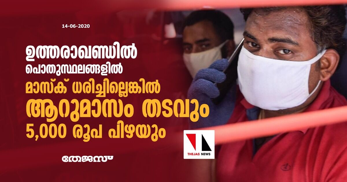 ഉത്തരാഖണ്ഡില് പൊതുസ്ഥലങ്ങളില് മാസ്ക് ധരിച്ചില്ലെങ്കില് ആറുമാസം തടവും 5,000 രൂപ പിഴയും