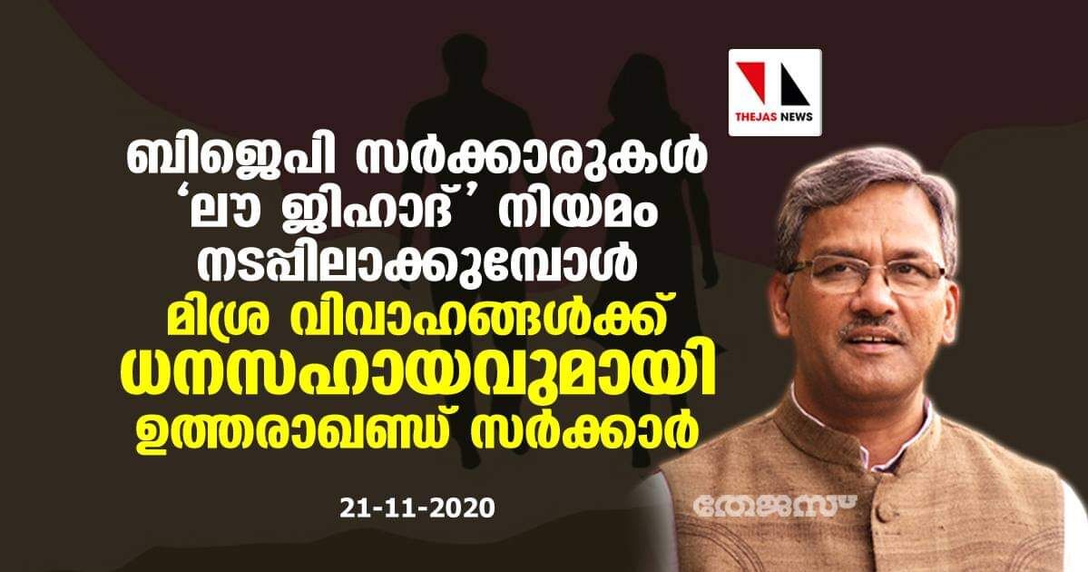 ബിജെപി സർക്കാരുകൾ 'ലൗ ജിഹാദ്' നിയമം നടപ്പിലാക്കുമ്പോൾ മിശ്ര വിവാഹങ്ങൾക്ക് ധനസഹായവുമായി ഉത്തരാഖണ്ഡ് സർക്കാർ