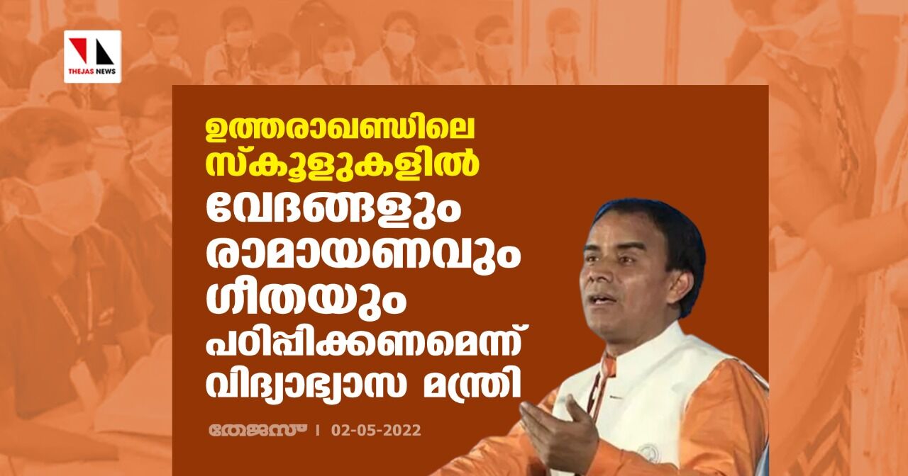 ഉത്തരാഖണ്ഡിലെ സ്കൂളുകളില് വേദങ്ങളും രാമായണവും ഗീതയും പഠിപ്പിക്കണമെന്ന് വിദ്യാഭ്യാസ മന്ത്രി