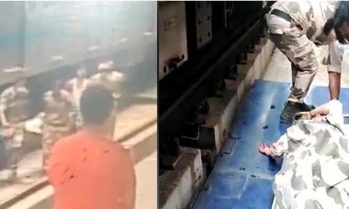 പാഞ്ഞുവരുന്ന ട്രെയിനിന് മുന്നില് ചാടി യുവതി; സാഹസികമായി രക്ഷപ്പെടുത്തി സുരക്ഷാ ഉദ്യോഗസ്ഥന്