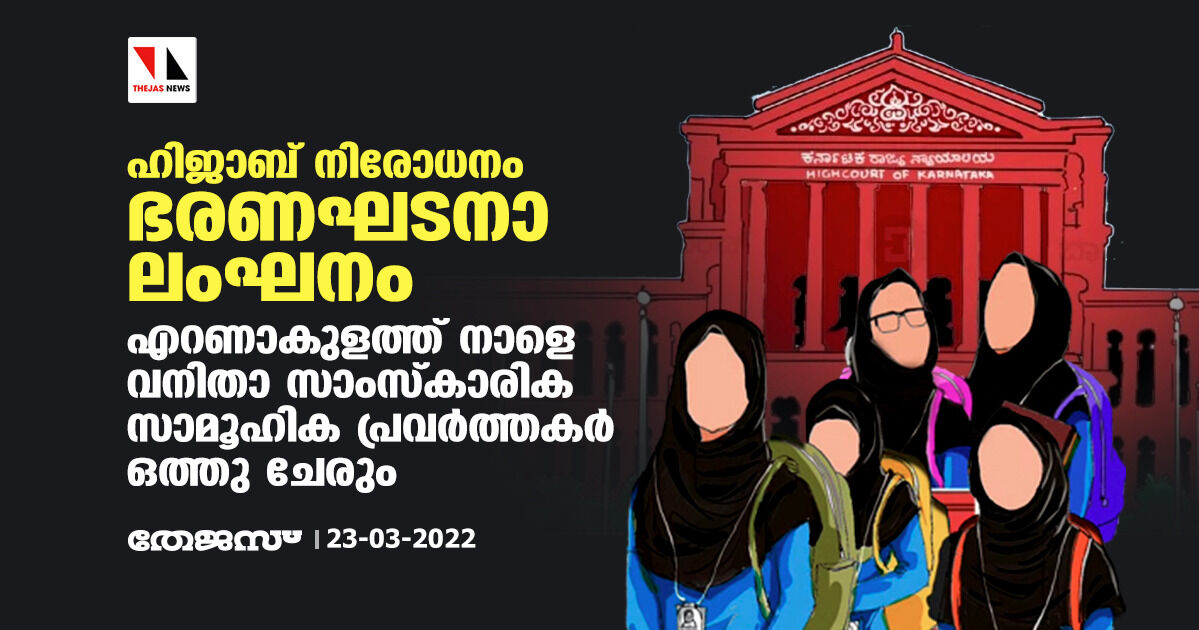 ഹിജാബ് നിരോധനം ഭരണഘടനാ ലംഘനം; എറണാകുളത്ത് നാളെ വനിതാ സാംസ്കാരിക സാമൂഹിക പ്രവര്ത്തകര് പ്രവര്ത്തകര് ഒത്തു ചേരും