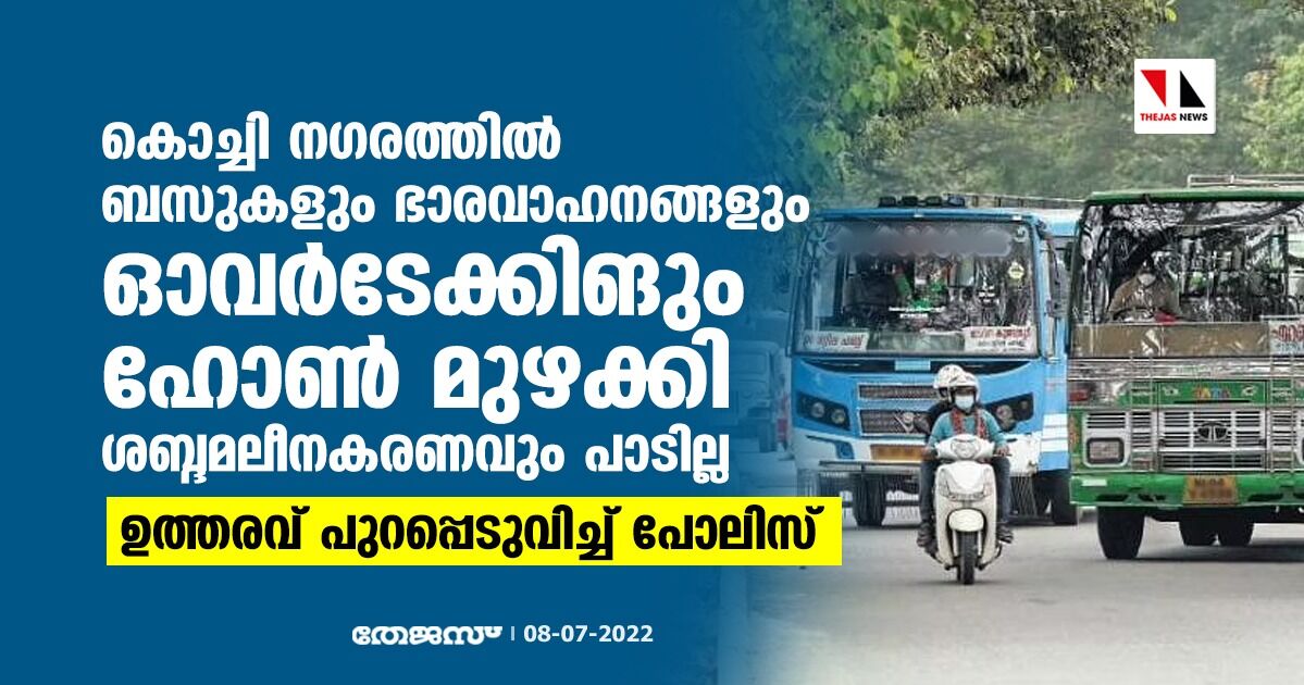 കൊച്ചി നഗരത്തില് ബസുകളും ഭാരവാഹനങ്ങളും ഓവര്ടേക്കിംഗും ഹോണ് മുഴക്കി ശബ്ദമലീനകരണവും പാടില്ല;ഉത്തരവ് പുറപ്പെടുവിച്ച് പോലിസ്