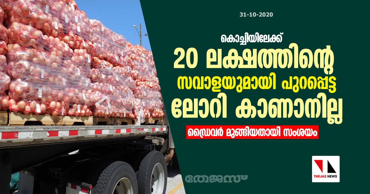 കൊച്ചിയിലേക്ക് 20 ലക്ഷത്തിന്റെ സവാളയുമായി പുറപ്പെട്ട ലോറി കാണാണില്ല; ഡ്രൈവര് മുങ്ങിയതായി സംശയം