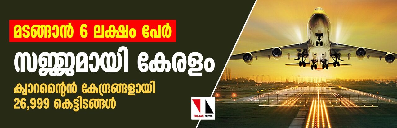 മടങ്ങാന് 6 ലക്ഷം പേര്: സജ്ജമായി കേരളം; ക്വാറൻ്റൈന് കേന്ദ്രങ്ങളായി 26,999 കെട്ടിടങ്ങള്