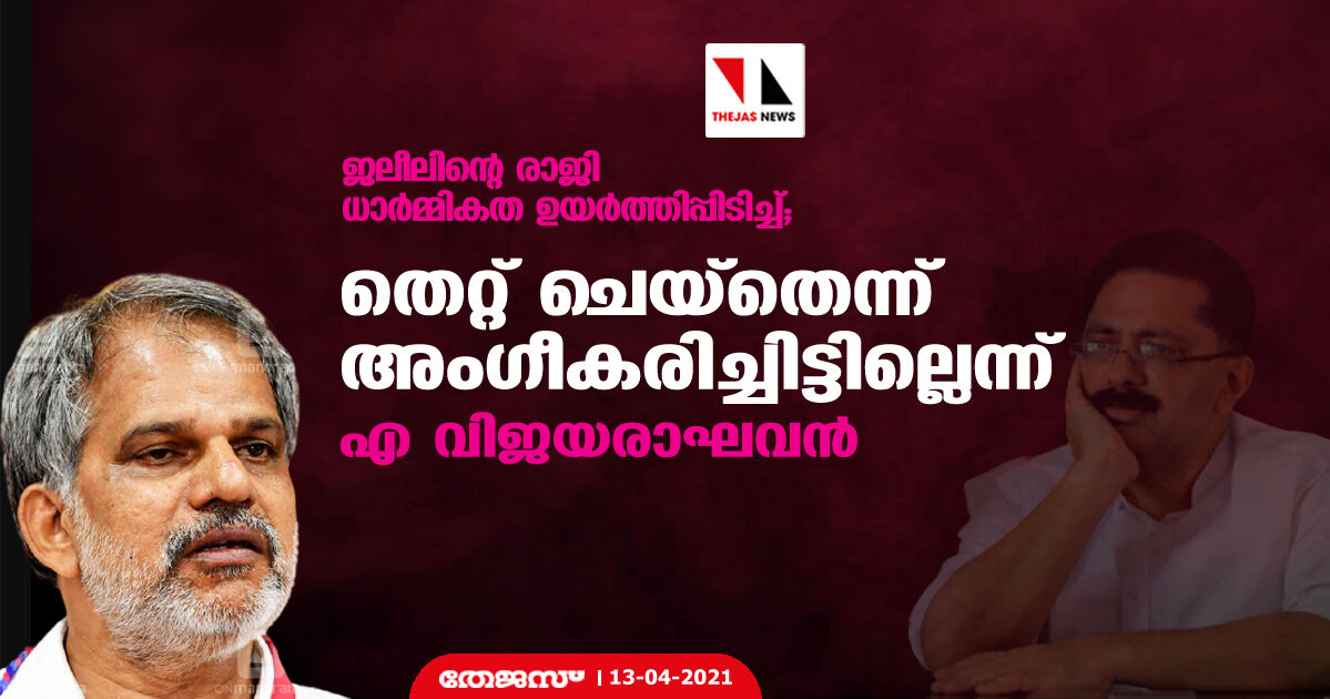 ജലീലിന്റെ രാജി ധാർമ്മികത ഉയർത്തിപ്പിടിച്ച്; തെറ്റ് ചെയ്തെന്ന് അംഗീകരിച്ചിട്ടില്ലെന്ന് എ വിജയരാഘവൻ