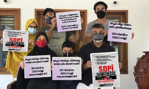 ജനസംഖ്യാനുപാതികമായി ജില്ലയ്ക്ക് വാക്സിന് അനുവദിക്കുക, കൊവിഡ് നിയന്ത്രണത്തിനായി മൂന്ന് സോണുകളായി തിരിച്ച് മൂന്ന് സബ് കലക്ടര്മാര്ക്ക് ചുമതല നല്കുക, എല്ലാ പഞ്ചായത്തുകളിലും ആവശ്യത്തിന് വാക്സിനേഷന് സെന്ററുകള് അനുവദിക്കുക, ജില്ലയില് പ്രതിദിനം 25,000 ആന്റിജന് ടെസ്റ്റുകള് ഗ്രാമപ്പഞ്ചായത്തുകള് വഴി നടത്തുക, ജില്ലയ്ക്കാവശ്യമായ ചികില്സാ സൗകര്യങ്ങള് ആശുപത്രികള് സ്റ്റാഫുകള് അനുവദിക്കുക, ആരോഗ്യമേഖലയില് ജില്ലയില് ഒഴിവുള്ള തസ്തികകള് താല്ക്കാലിക അടിസ്ഥാനത്തിലെങ്കിലും ഉടന് നികത്തുക, മഞ്ചേരി മെഡിക്കല് കോളജിനെ പൂര്ണാര്ഥത്തില് സജ്ജമാക്കുക തുടങ്ങിയ ആവശ്യങ്ങളുന്നയിച്ചാണ് എസ്ഡിപിഐ സമരഭവനങ്ങള് തീര്ത്തത്. മജീദ് വെളിമുക്ക്, അസീസ് ചേലാംമ്പ്ര, മുസ്ത്തഫ പാമങ്ങാടന് ഭാസ്കരന് ചാലിയില് എന്നിവര് നേതൃത്വം നല്കി.