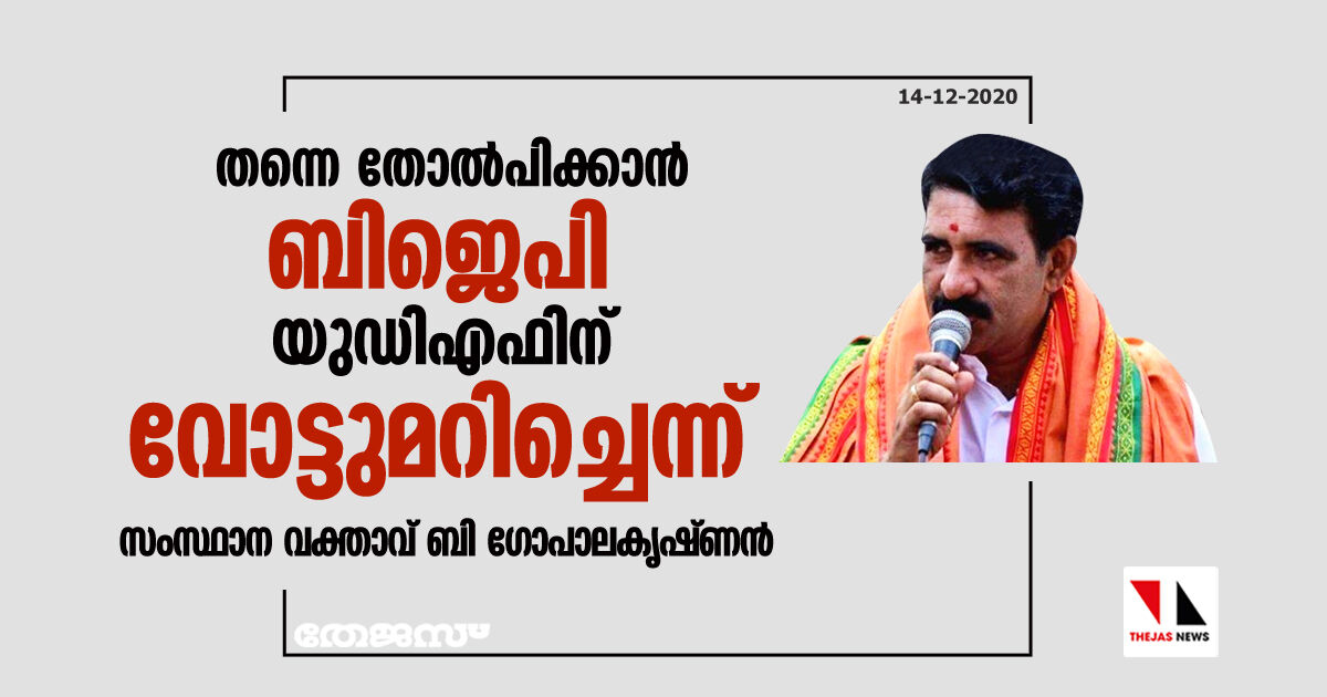 തന്നെ തോല്പിക്കാന് ബിജെപി യുഡിഎഫിന് വോട്ടുമറിച്ചെന്ന് സംസ്ഥാന വക്താവ് ബി ഗോപാലകൃഷ്ണന്
