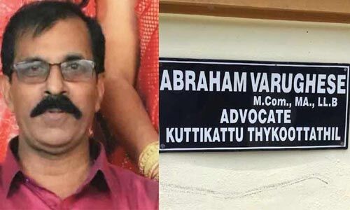 ചെങ്ങന്നൂര് കോടതിയില് അഭിഭാഷകനായ പുത്തന്കാവ് അങ്ങാടിക്കല് ശാലേം നഗറില് കുറ്റിക്കാട്ട് തൈക്കൂട്ടത്തില് എബ്രഹാം വര്ഗീസ് (65) ആണ് മരിച്ചത്. സംഭവത്തില് രണ്ടുപേരെ പോലിസ് കസ്റ്റഡിയിലെടുത്തു.