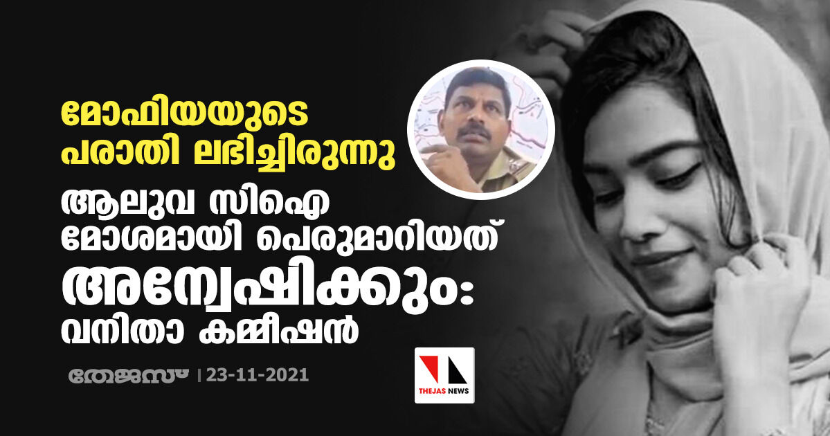 മോഫിയയുടെ പരാതി ലഭിച്ചിരുന്നു; ആലുവ സിഐ മോശമായി പെരുമാറിയത് അന്വേഷിക്കും: വനിതാ കമ്മീഷൻ